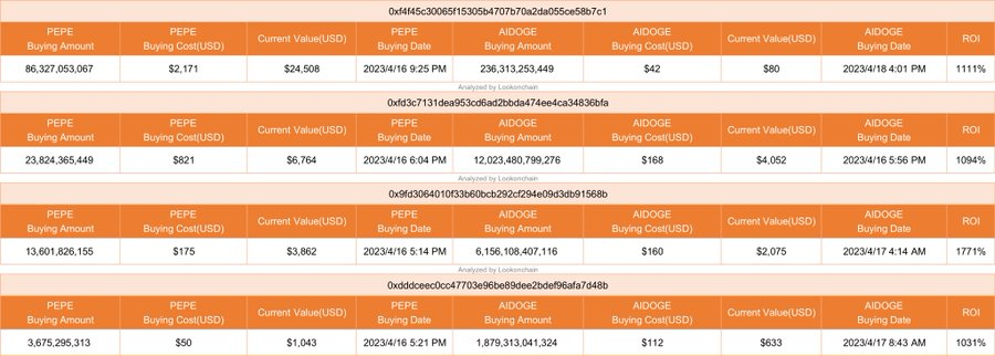 The post also revealed that many of these SmartMoney addresses favored cryptos like Pepe (PEPE) and ArbDoge AI (AIDOGE). Lookonchain added that some of these addresses made 10x+ gains on these meme coins so far.