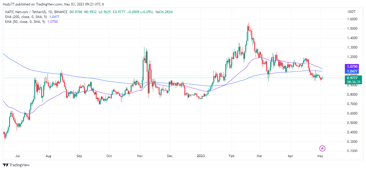 Despite Polygon’s countless innovative partnerships and bullish news events, its native token remained bearish for most of the 2023 first quarter. And BTC’s impressive price movements in April were still not enough to awaken Polygon bulls, as bears remained adamant and unmoved. However, Polygon (MATIC) bulls remain resilient in their new show of strength in May.