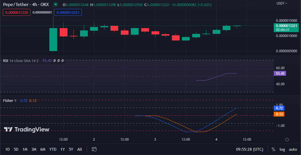 The PEPE/USDT price chart’s Relative Strength Index (RSI) score of 52.79 indicates that it is now in a neutral position, neither overbought nor oversold.