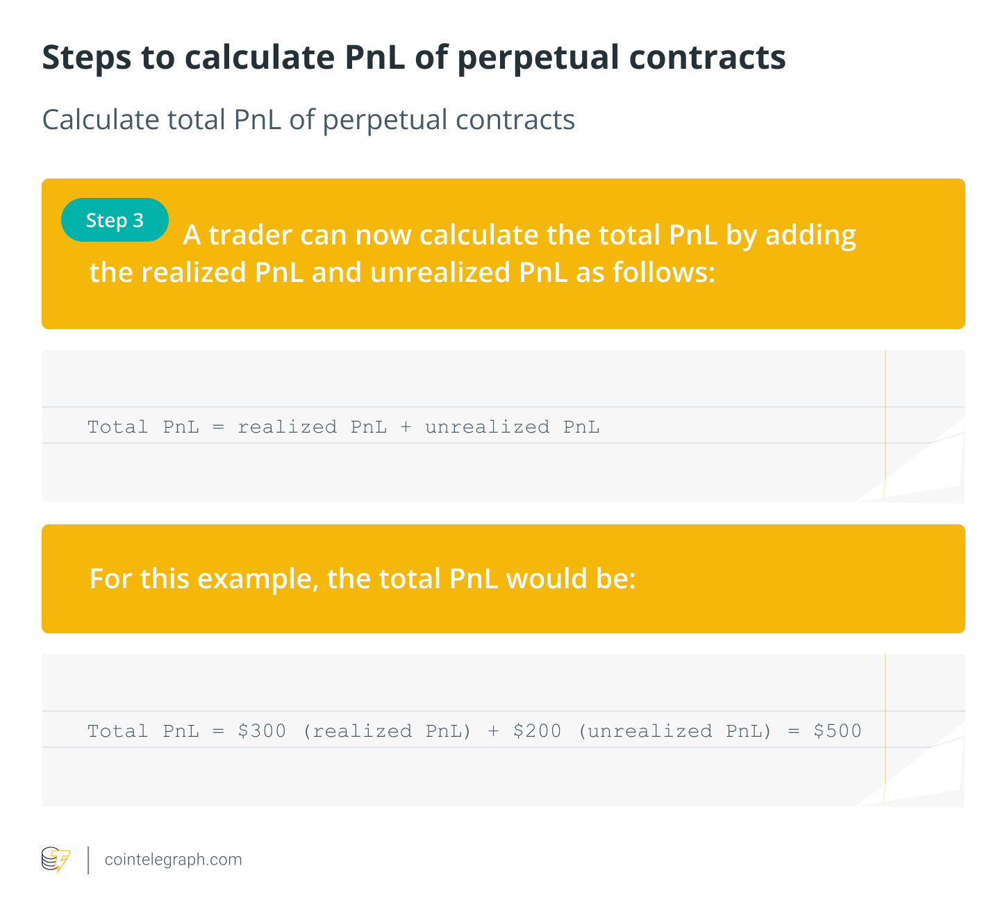 Again, this is a simplified way to explain the concept of calculating PnL for crypto perpetual contracts. When calculating total PnL in real life, a trader needs to take into account factors like trading fees and funding rates.