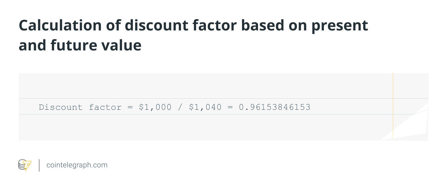 There is a different way to use future value as well. Traders could ask how much to stake to get $1,040 in a year. If they know the present and future values, they could calculate the discount factor. The formula for calculating the discount factor is:
