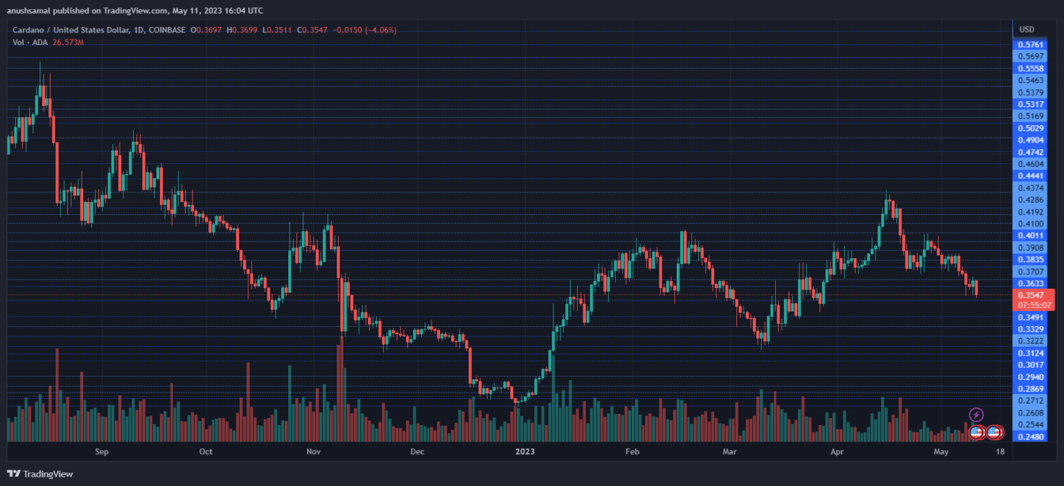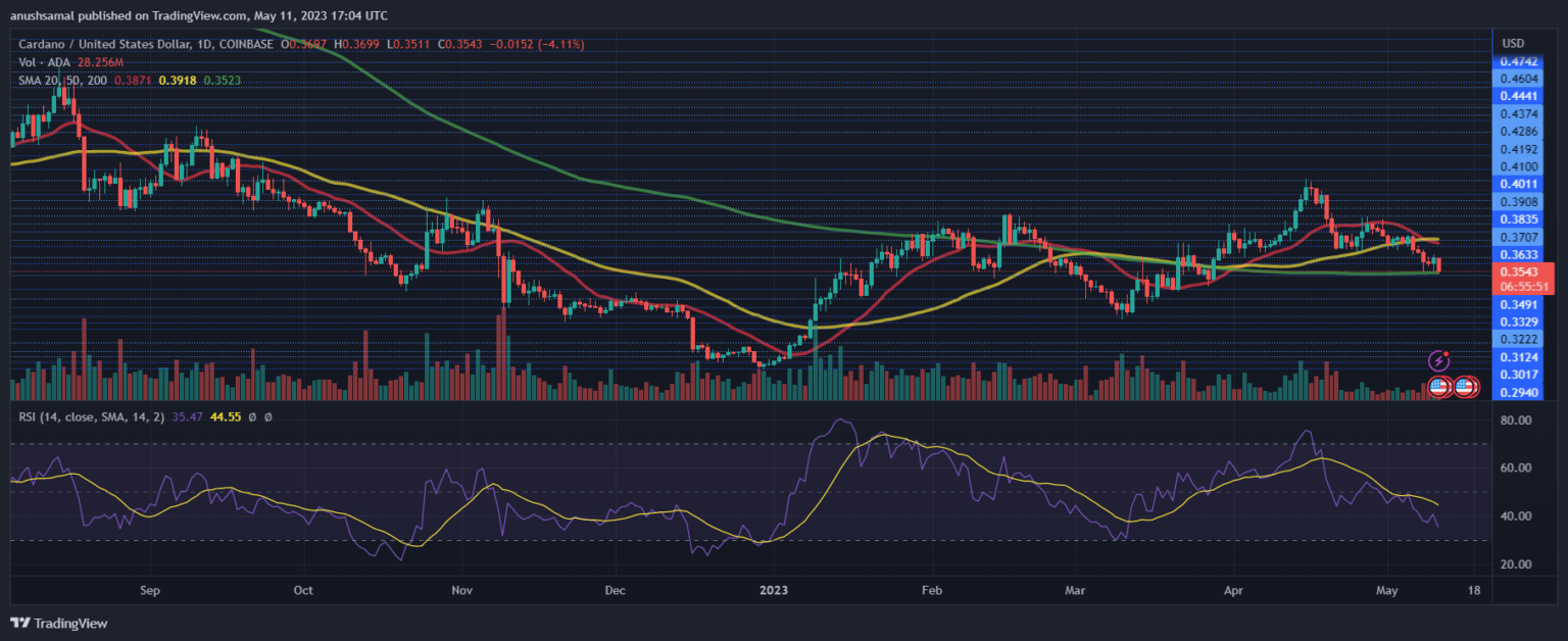 At the time of writing, the price of ADA stood at $0.35, and it is approaching a significant local support level that has played a crucial role in the past.