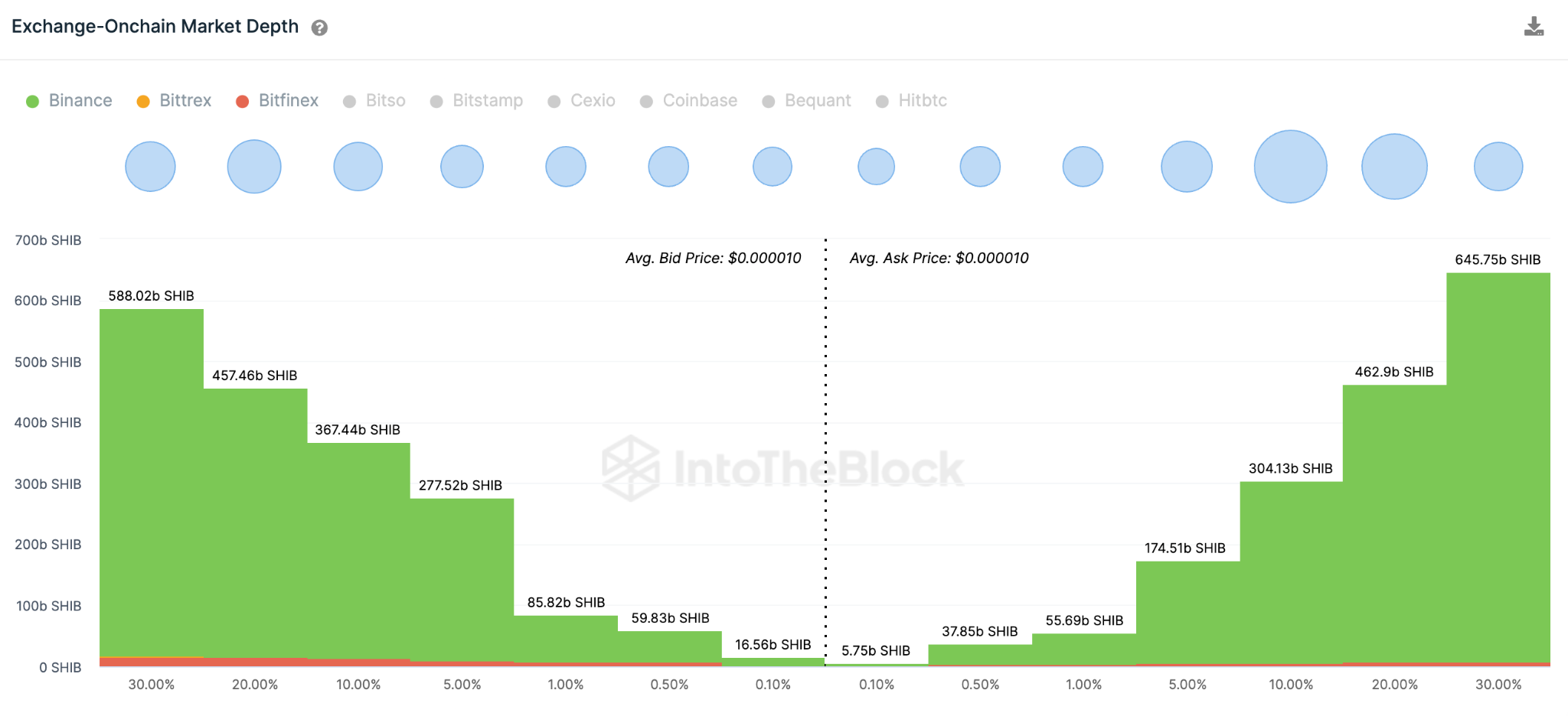According to IntoTheBlock’s Exchange On-chain Market Depth, SHIB must rise 10% to cross $0.000010 before holders can be confident of the bullish Shiba Inu price prediction. At that zone, bearish traders looking to sell 304 billion SHIB could slow the rally.