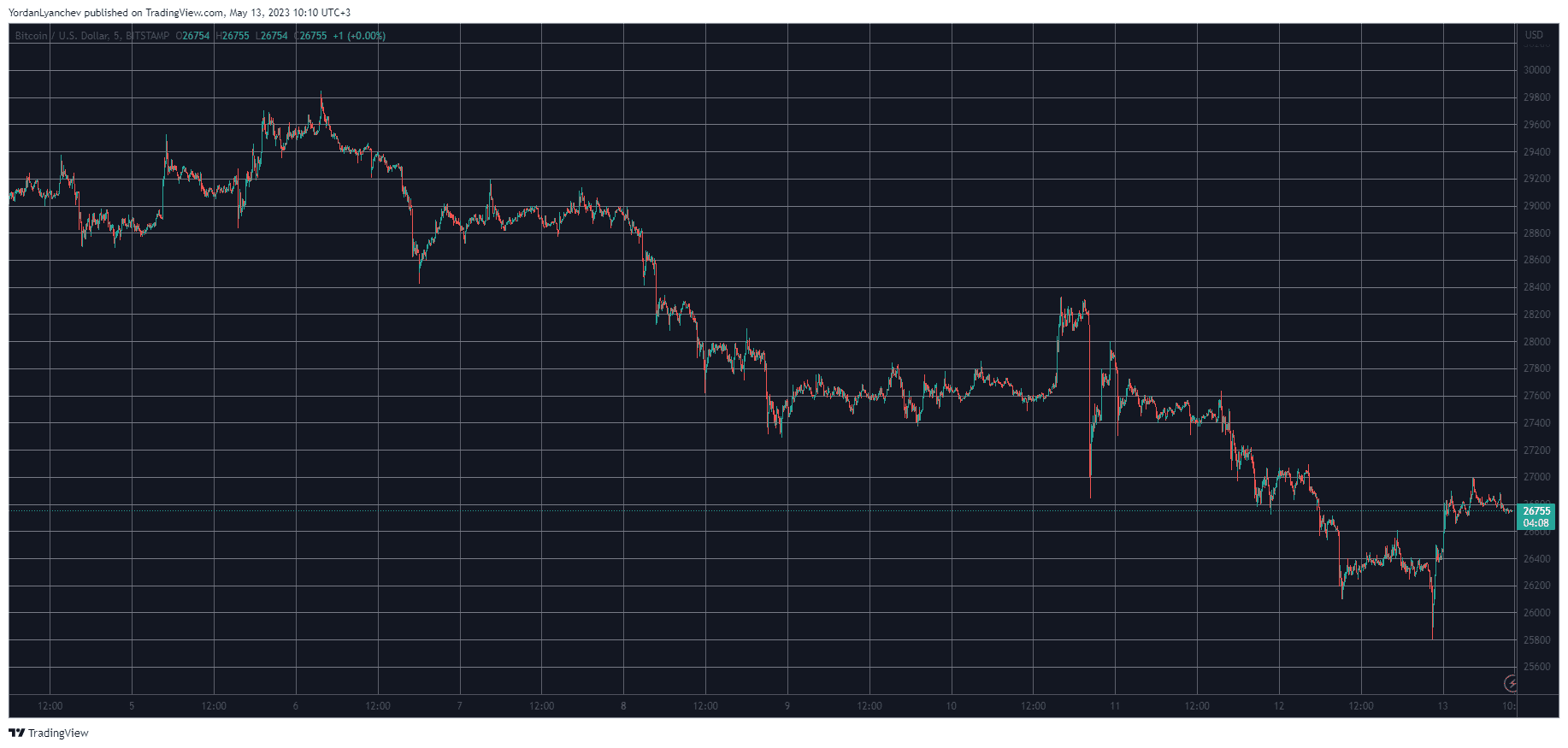 The major news from the past week came when the US CPI numbers for April informed that the inflation rates had slowed down and were actually lower than the expectations. Bitcoin reacted positively to the news at first and spiked from $27,500 to almost $28,500 in minutes.
