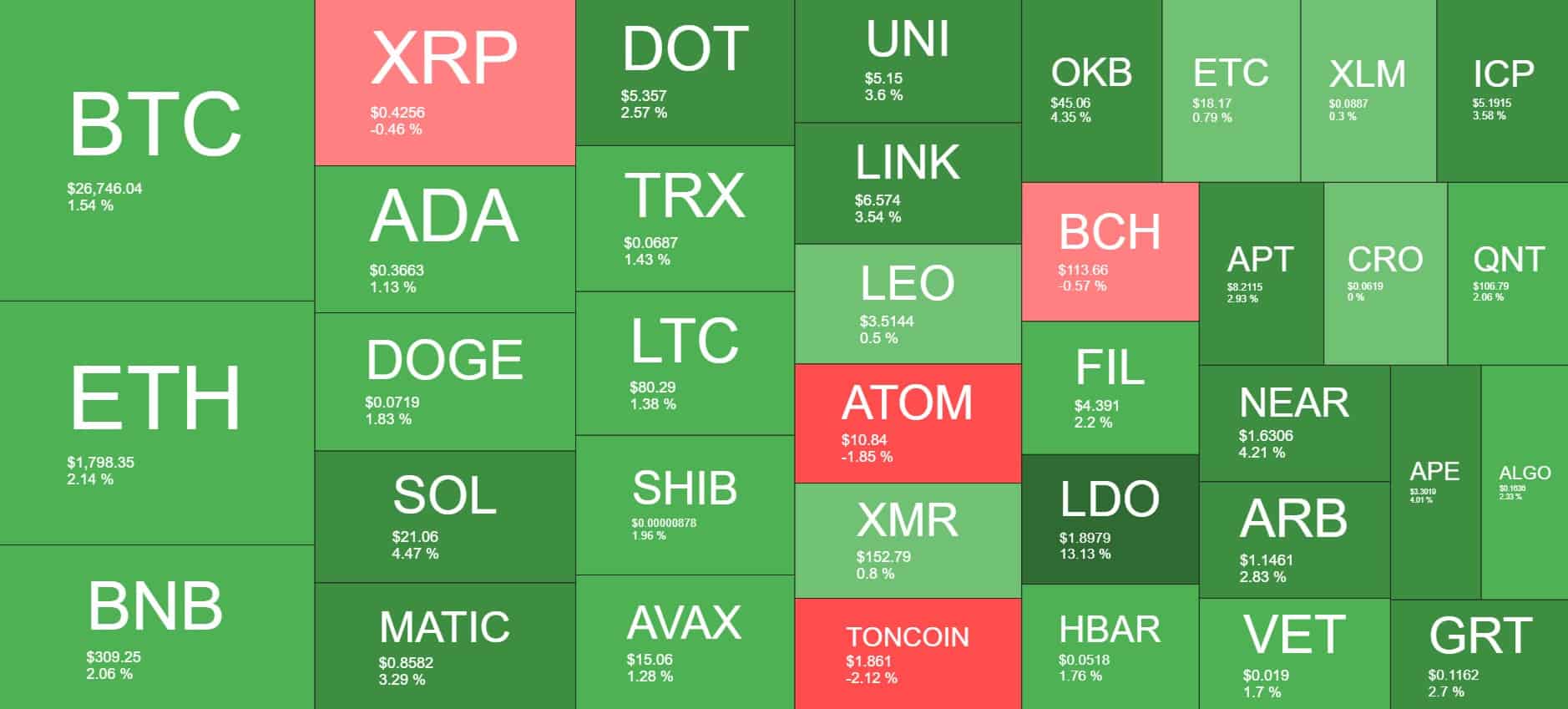 The bulls finally stepped up on the gas at this point and pushed bitcoin north. As a result, BTC pumped and touched $27,000. It has been unable to reclaim that level yet, though, and now sits inches below it.