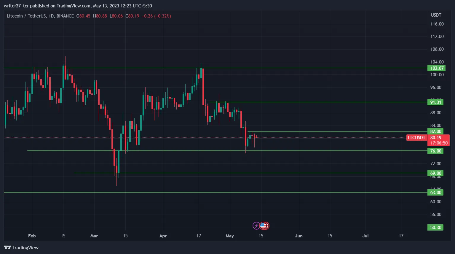 The market structure and price action for Litecoin is bearish as of now, but the candles show exhaustion of bearish momentum. The technical parameters indicate more buyers are jumping into the market, and a break above $82 can push the price to $91. Litecoin’s recent collaboration with Mastercard is expected to boost adoption, and the upcoming halving event can help the price regain bullish momentum.