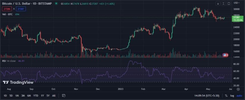 Bitcoin (BTC) was back in green on Tuesday as the largest crypto token jumped about 1.53% in the last 24 hours to regain $27,000-mark. At the time of writing, the largest digital asset is hovering at $27,252. Over the past seven days, BTC bounced 0.12% signalling a bullish momentum. Bitcoin’s dominance also rose 0.02% over the day to 46.43%. In the wake of the recent price rally, market experts anticipate a price surge in the horizon.