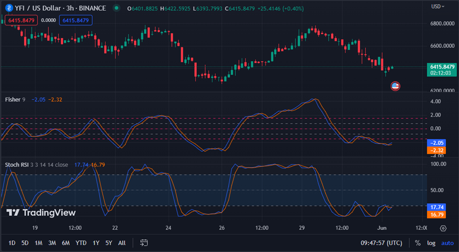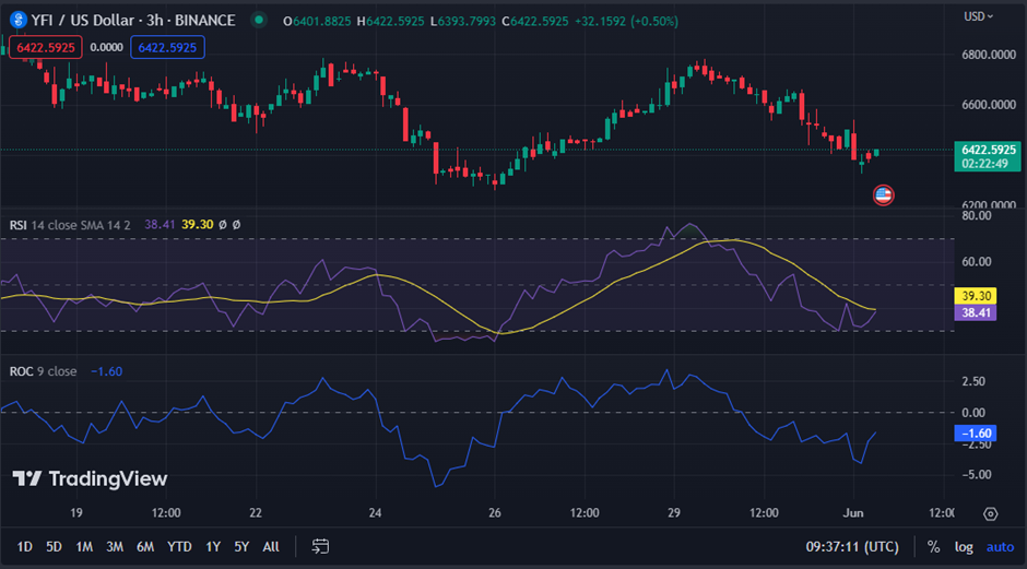 Due to this resistance, the $YFI price dropped to a 24-hour low of $6,349.29, establishing support. As of press time, the $YFI was still trading at $6,400.12, a 1.99% decline from its previous close.