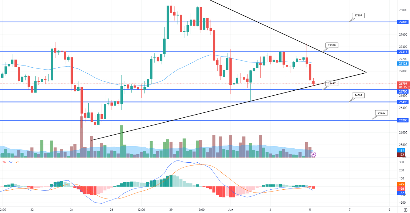 For today's trading, keeping an eye on the $27,000 support level is crucial.