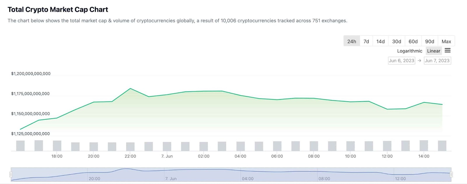 Since the SEC’s first lawsuit against Binance on June 5, which instantly triggered hundreds of millions in outflows, the global crypto market cap experienced a volatile range from $1.132 trillion to $1.180 trillion.