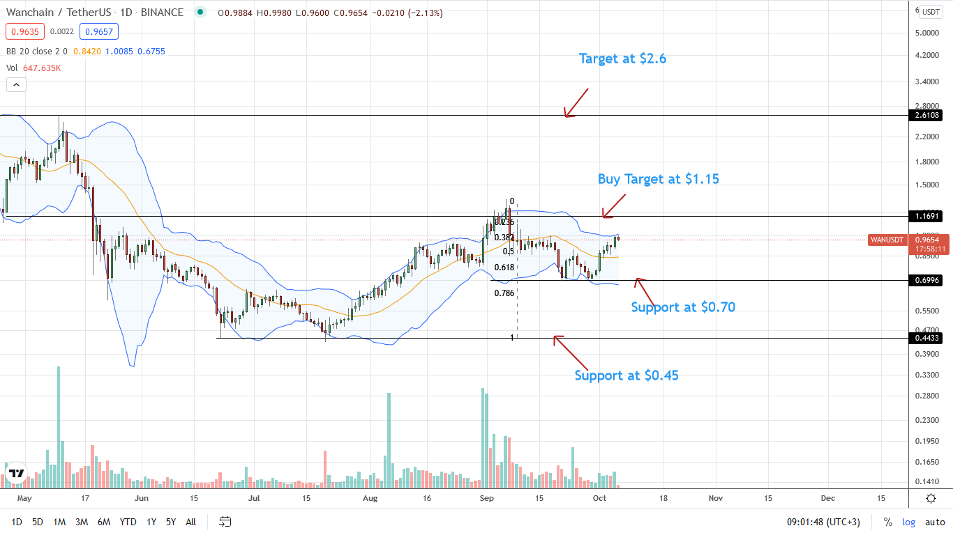 Conversely, losses below $0.85 might see WAN token prices crash to $0.70 in the bear trend continuation of September 2021.