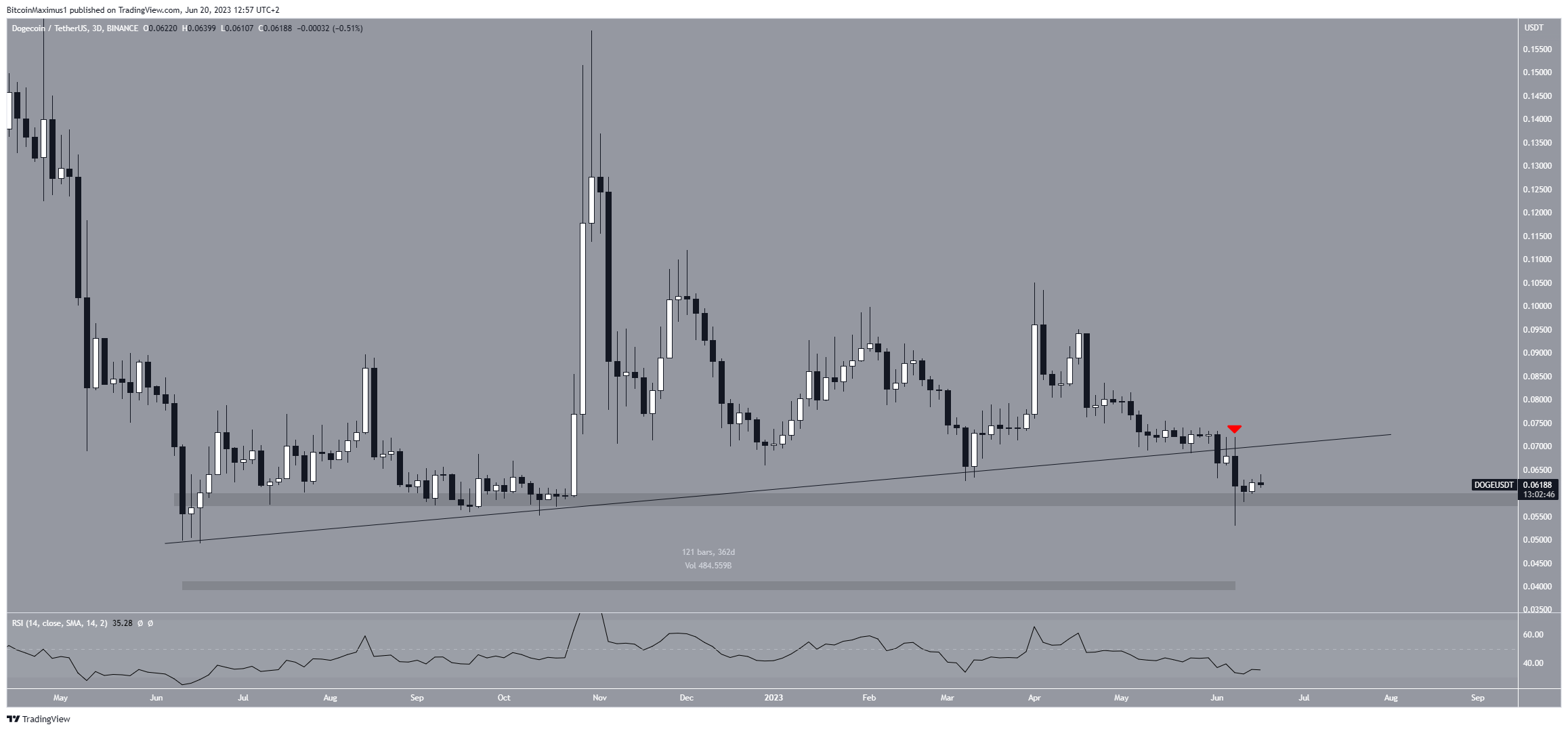 After the breakdown, the meme coin bounced at the $0.060 horizontal support area.
