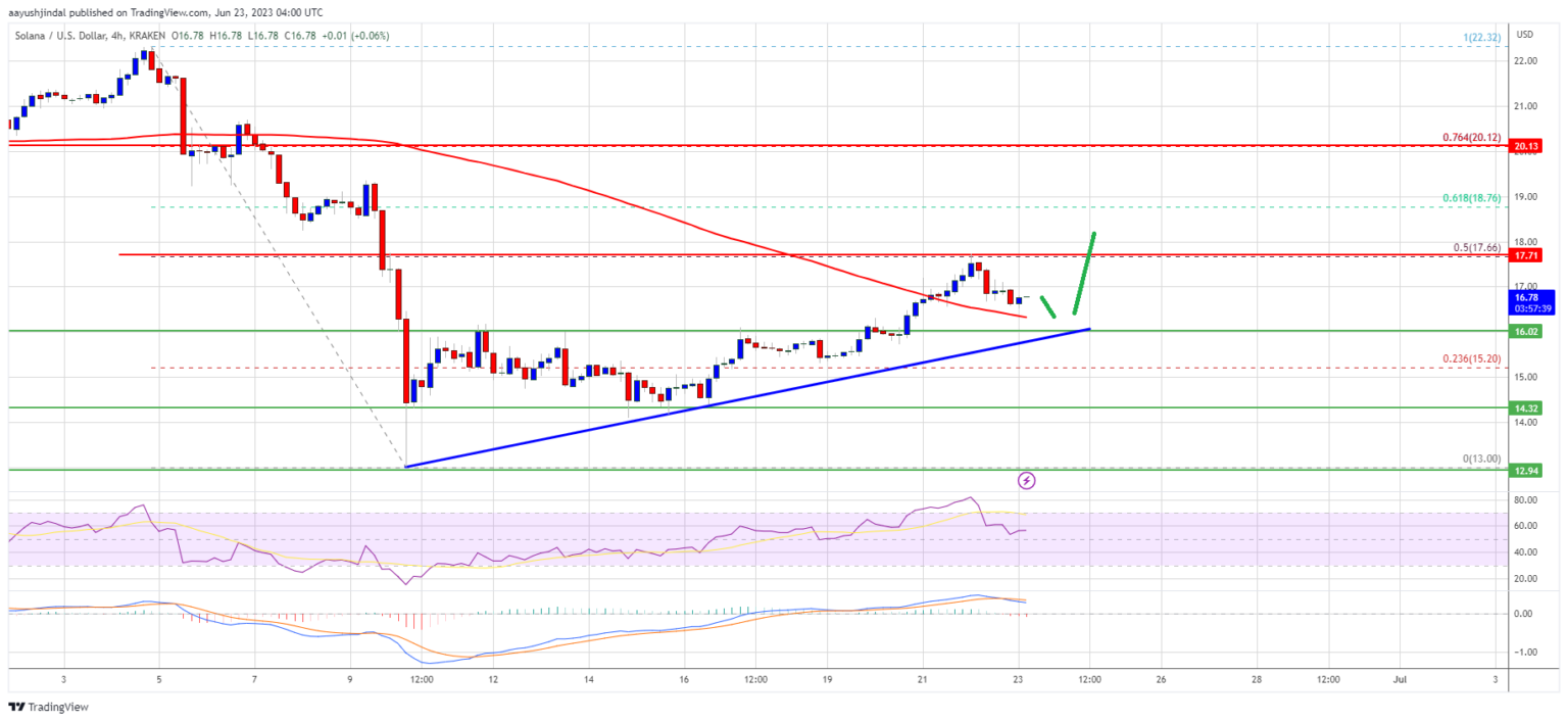 If SOL fails to clear the $17.75 resistance, it could start a fresh decline. Initial support on the downside is near the $16.00 level and the trend line.