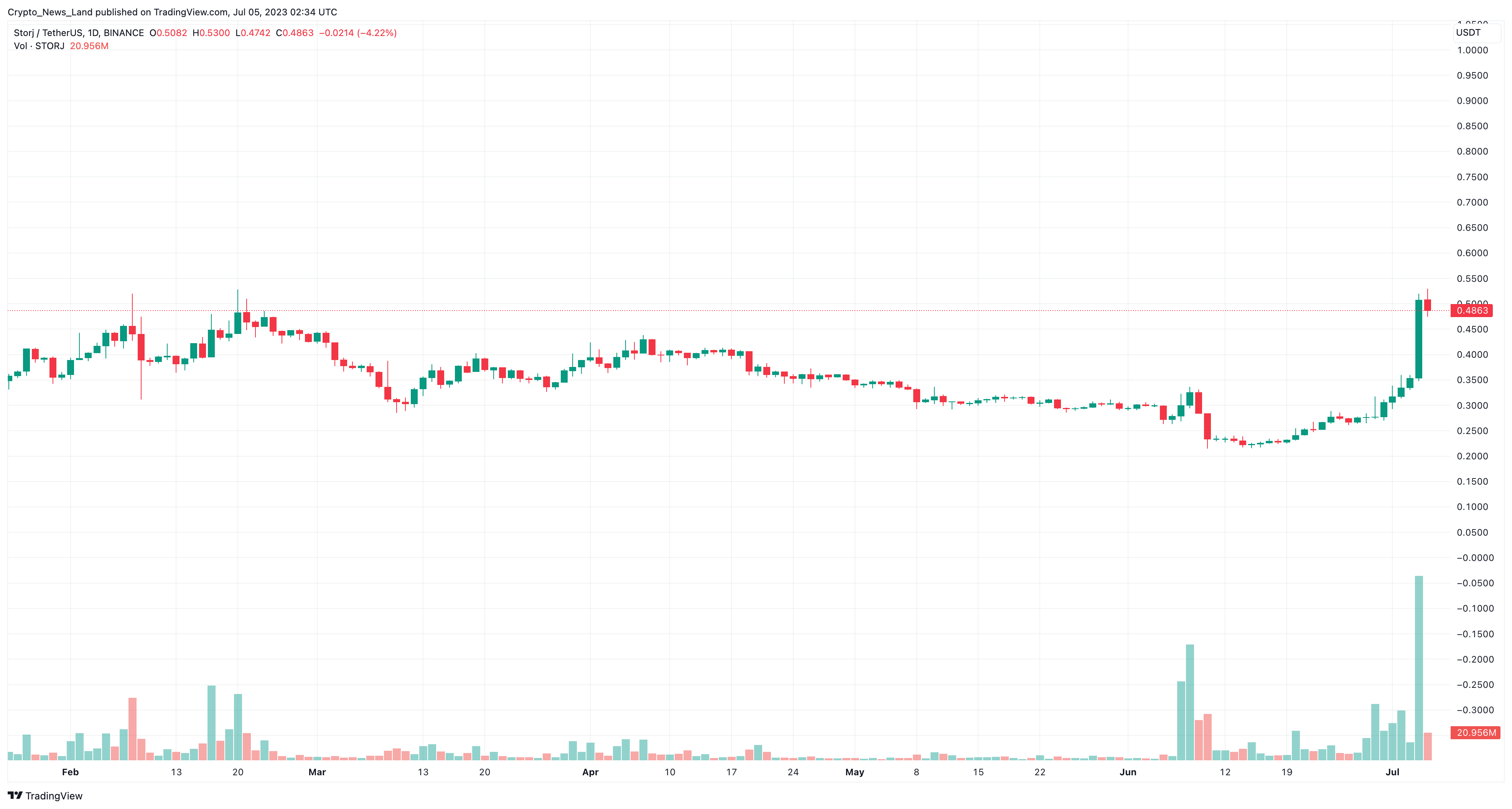 - STORJ has experienced a remarkable 37% surge in value within the past 24 hours, fueled by strong trading volume on Upbit.
