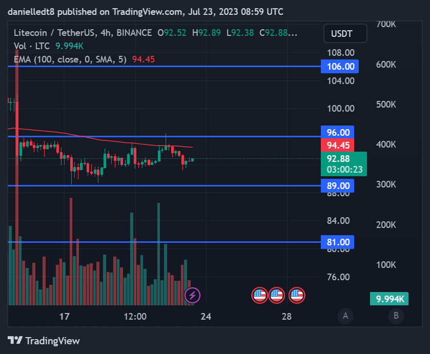LTC suffered a similar fate as it saw its price drop by more than 2% over the past 24 hours. This left the altcoin trading at $92.57, according to CoinMarketCap.