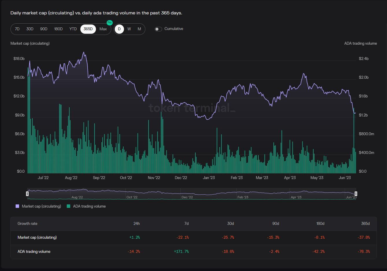 | Cardano | $9.6b | $0 | $6.47b | 66,791 | 54,977 |