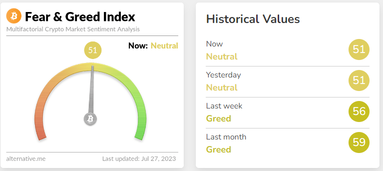 The market sentiment for $DOT is in the neutral zone and no major movement has been observed in the index for a brief period. The current value of market sentiment is 51 points, according to the Fear and Greed Index. A fall of 8 points was observed since last month.