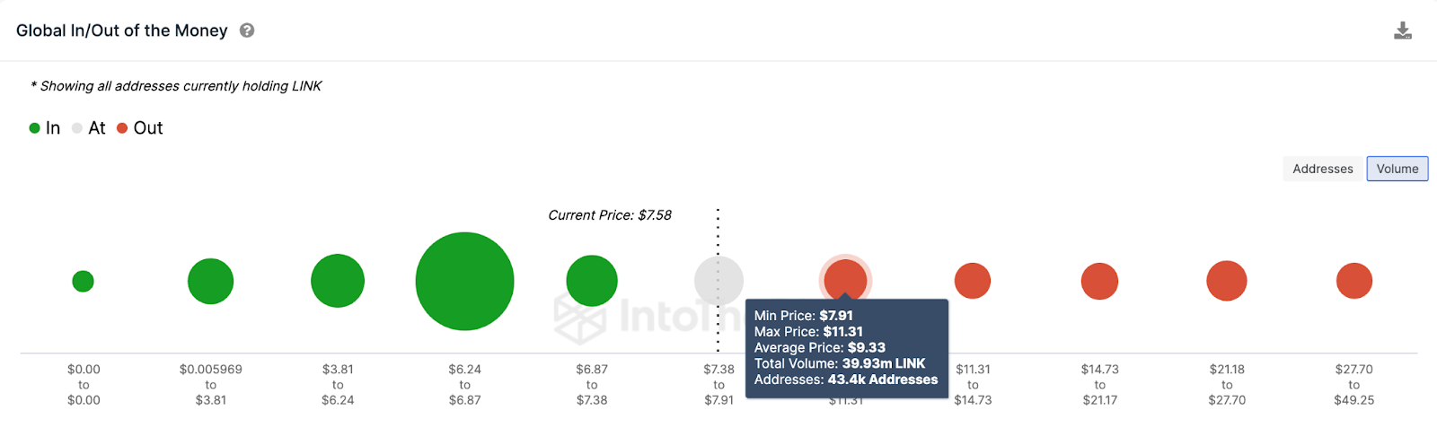 As depicted below, 43,400 addresses had bought just under 40 million LINK tokens at the average price of $9.33. If they exit their positions, they could trigger a pullback.