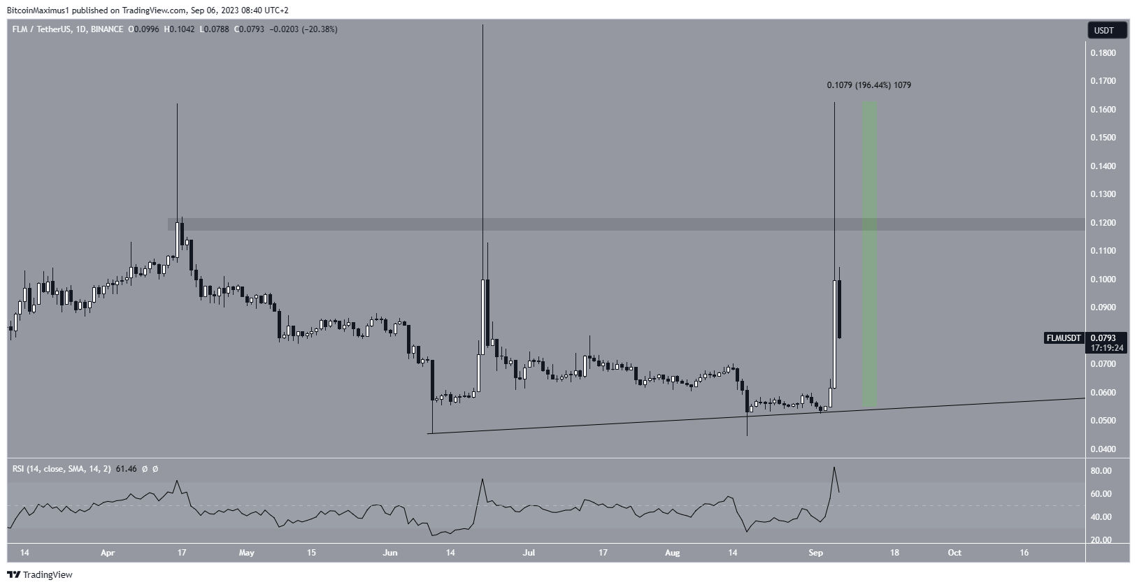 Nevertheless, FLM is still trading above an ascending support line that has been in place since June. More recently, the price validated this line on August 17, bouncing after its all-time low of $0.044. Then, it created a higher low on September 1 before accelerating its rate of increase.