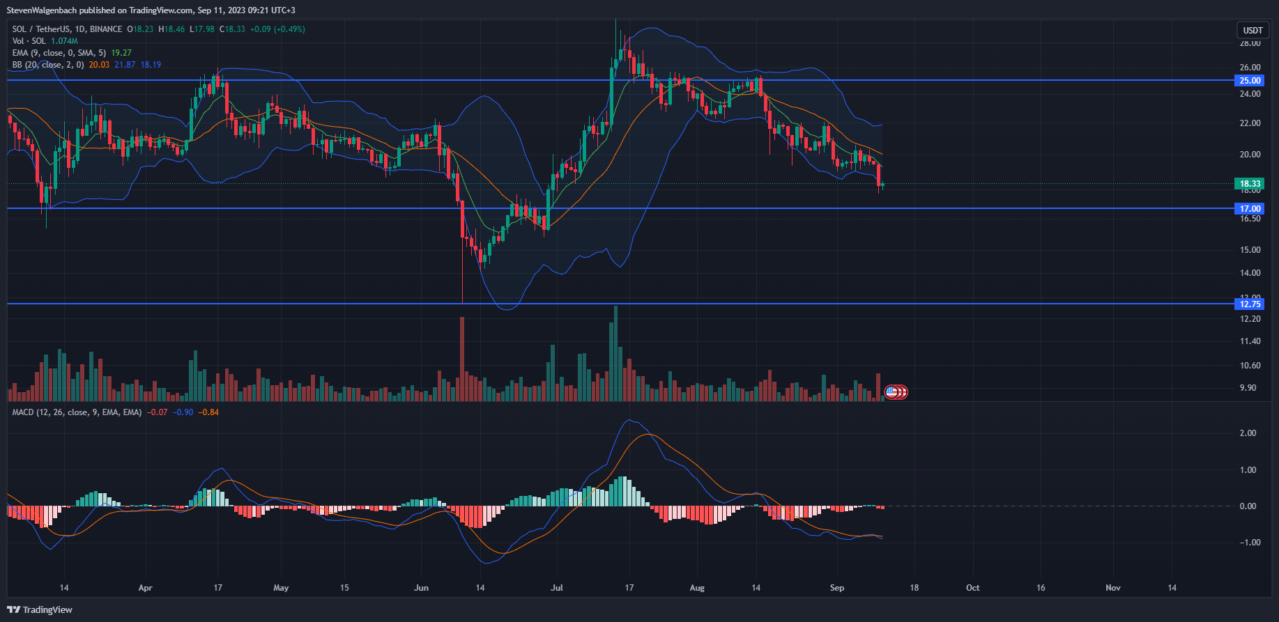 In the last 2 days, the daily Moving Average Convergence Divergence (MACD) line crossed below the daily MACD Signal line. This signaled that SOL’s momentum had shifted in favor of sellers. Consequently, the cryptocurrency was at risk of retesting the next support level at $17 in the coming few days.