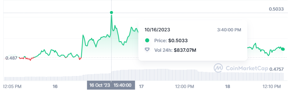 Specifically, the price of XRP briefly soared to over $0.50 on October 16, around the time of the original post, which claimed that users could begin using the crypto for Xsolla payments in supported games, including Roblox and Smite, according to the data retrieved on October 18.