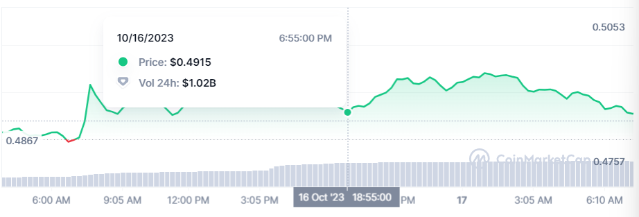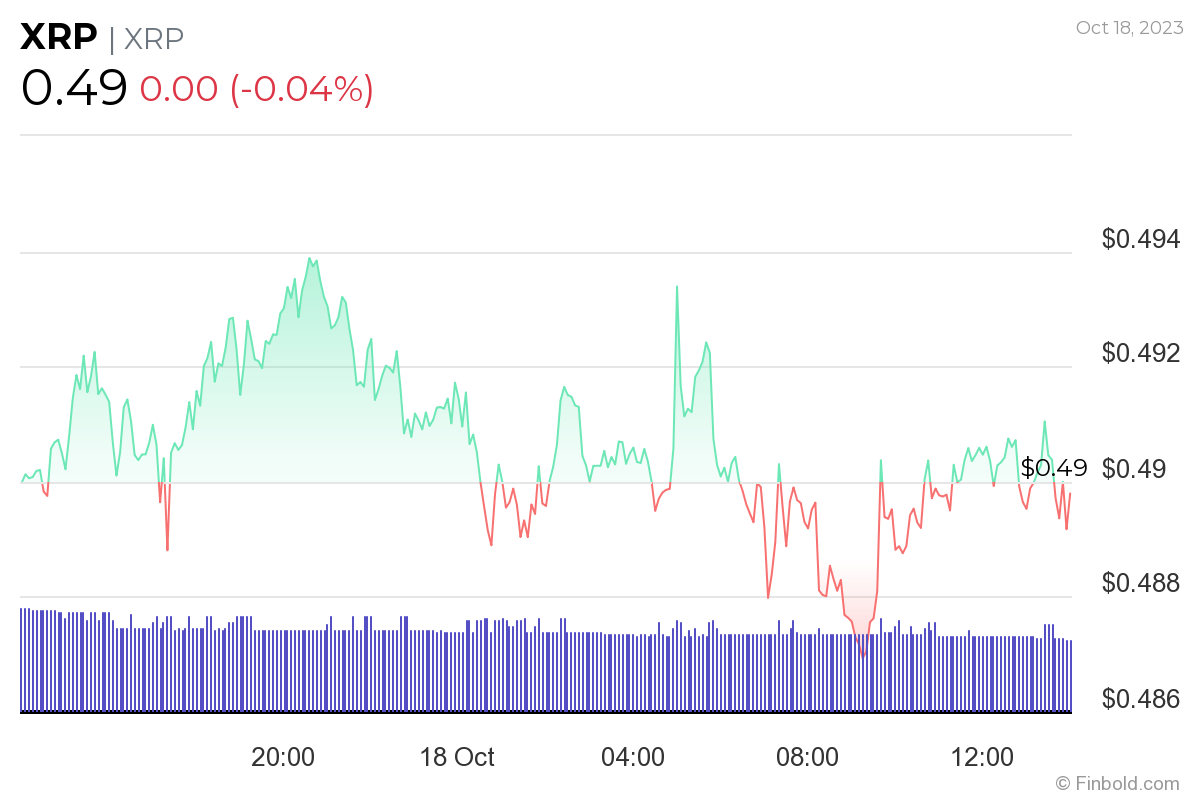As things stand, XRP was at press time trading at the price of $0.4898, which demonstrates a decline of 0.04% in the last 24 hours, a 0.56% gain across the previous seven days, and a 2.76% drop on its weekly chart, according to the most recent data retrieved on October 18.