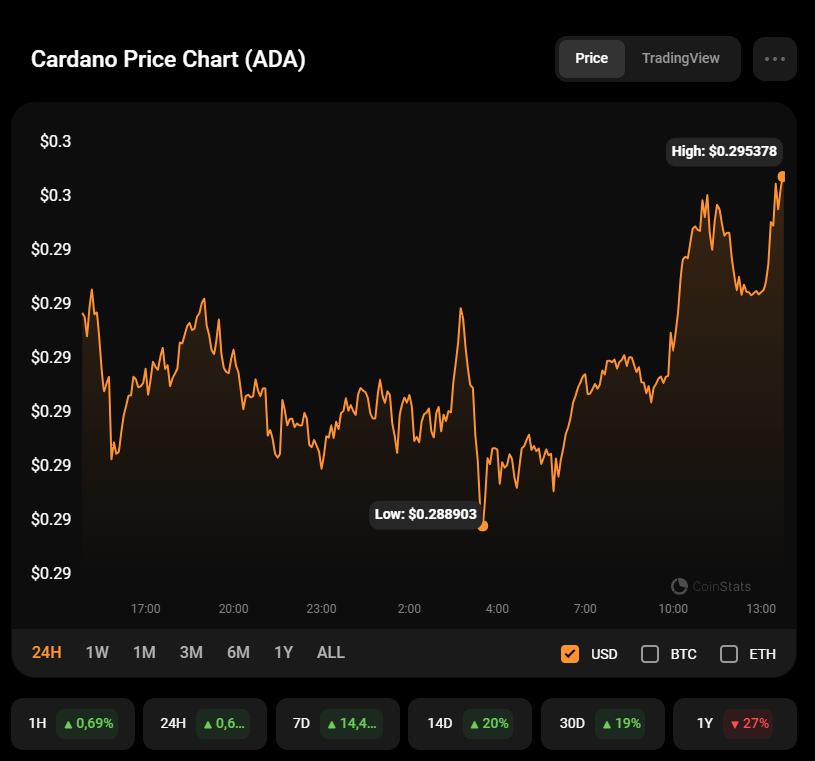ADA is trading at $0.2955 at press time.