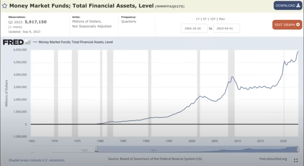 There’s more money on the sidelines… Look at the amount of money in money market funds – $6 trillion and growing, so that’s a really positive sign which is money will need to find a home…