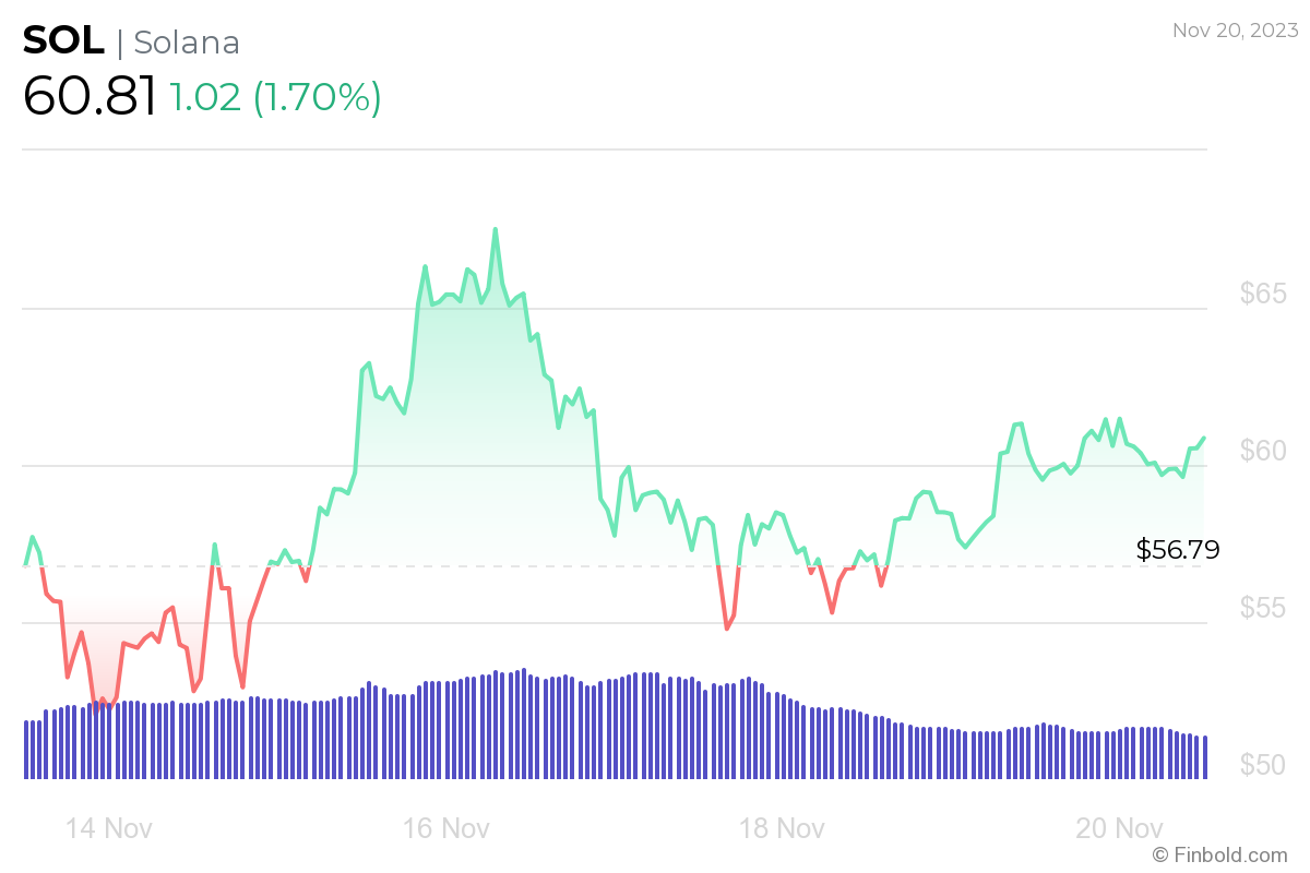 This value increase is credited with the positive sentiment regarding this digital asset, which has pushed its value over the $60 threshold for the first time since May 2022 and its largest positive sentiment spike from the SOL crowd since November 2022, as per a post on X from Santiment on November 19.