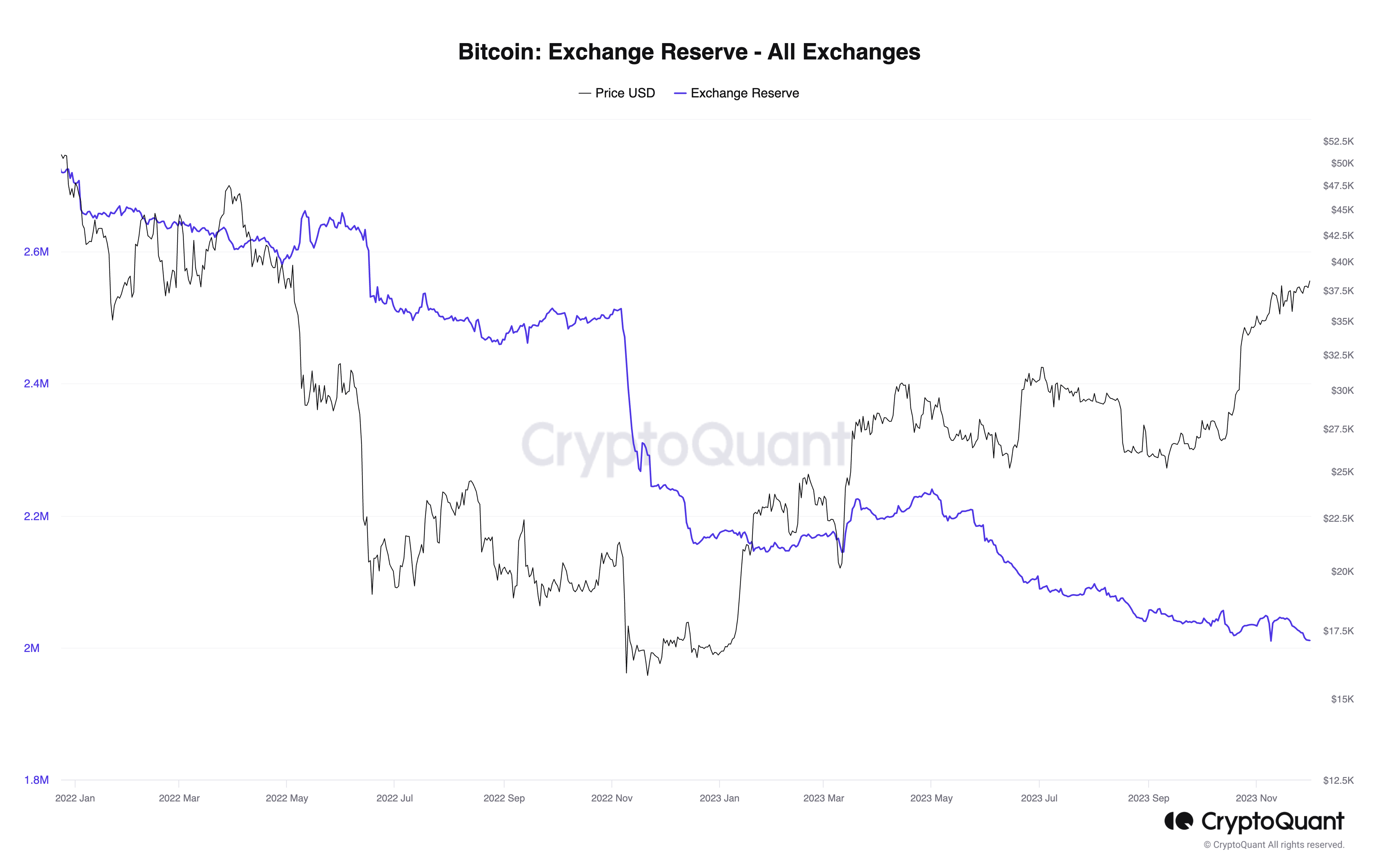 Bitcoin reserves across all exchanges. Source: CryptoQuant