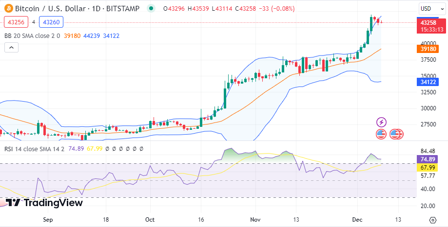 Bitcoin (BTC) is riding on bear activity, as the Bitcoin price stood at $43.2K as of press time after recording a daily decrease of 1.1% and a weekly rise of 12%. As a result of the Bitcoin price, the token’s trade volume jumped by 9% during the same period and is presently at $28.5B.