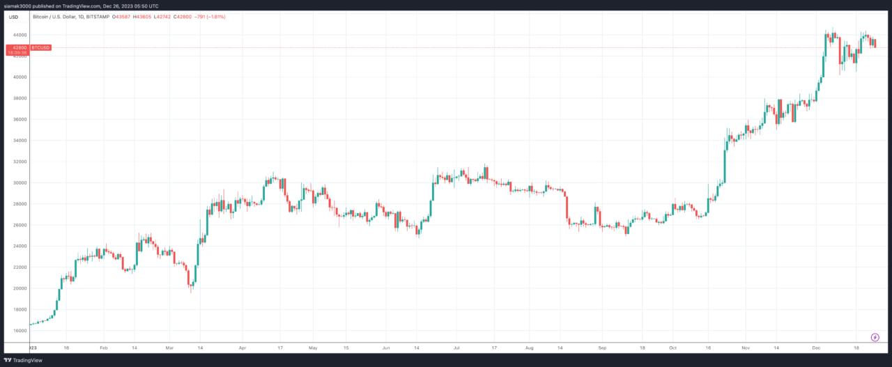According to Bloomberg, Bitcoin’s value soared by over 160% in 2023, adding approximately $530 billion to its market capitalization.