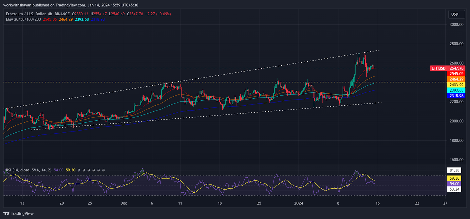 On the downside, the first notable support is at $2,400. Should this level be breached, the price could potentially decline to $2,200.