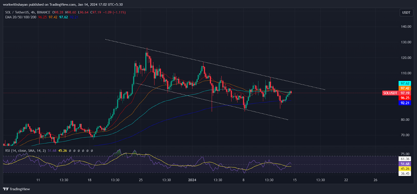 Conversely, if the bulls successfully push and maintain the price above the moving averages, they could gain control. This could lead to a breakout above the resistance channel at $103, sending $SOL price above $120.