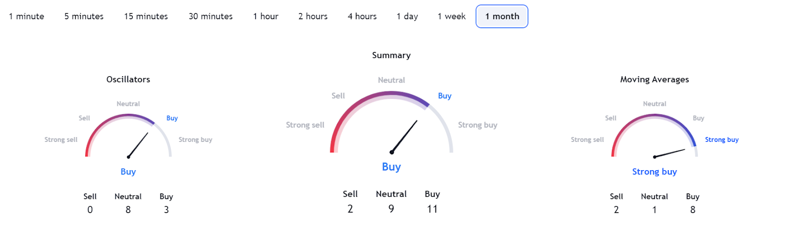 On top of that, XRP boasts a bullish sentiment on its 1-day, 1-week, and 1-month gauges at TradingView, all of which suggest a ‘buy’ for the asset that has been at the center of the legal struggle between the United States Securities and Exchange Commission (SEC) and Ripple over XRP issuance and status.