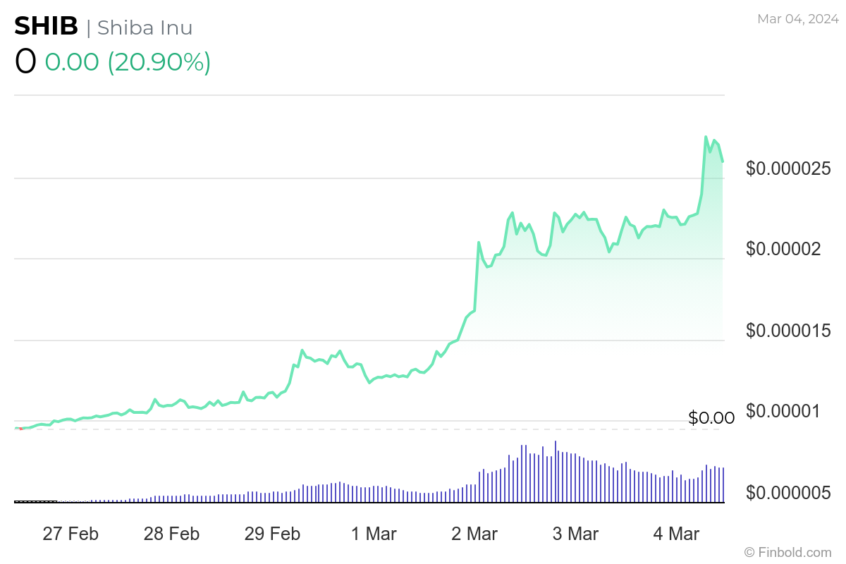 Indeed, Shiba Inu has recently made a massive rally that saw its price hit $0.00002597, which are the levels last seen in mid-2022, before it declined and started to move in a rather steady sideways pattern – right until March 2024, according to the most recent charts on March 4.