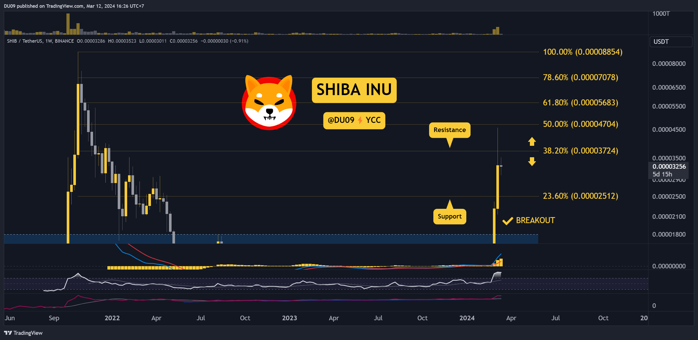 Considering the price tripled in a week, a consolidation at this time is a healthy and expected move from Shiba Inu. As long as the key support at $0.000025 holds, then buyers can try to break higher later.