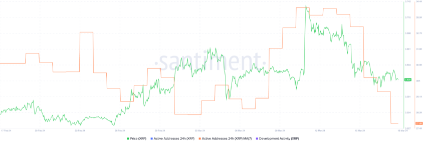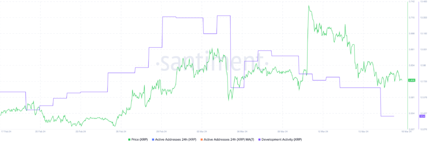 Traditionally, a robust development ecosystem strongly correlates with a cryptocurrency’s price. This holds true for XRP as well. On March 13, XRP’s development activity reached its highest level since November 2023, clocking in at 13.18. This surge in activity could be interpreted as a surge in investor interest and confidence in the project’s future.