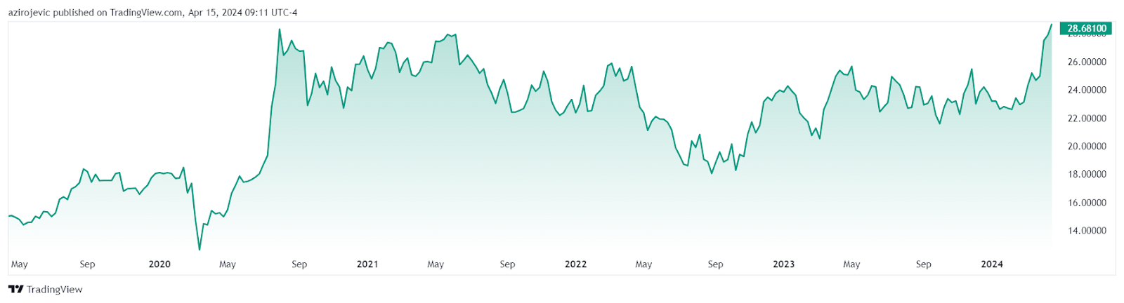 Amid reports that silver is quietly outpacing gold in 2024, having increased its value by over 20% since the year’s turn and settling at $28.7 per troy ounce after hitting $30 an ounce for the first time since May 2021, there are two tokenized silver cryptocurrencies that can offer exposure to it.