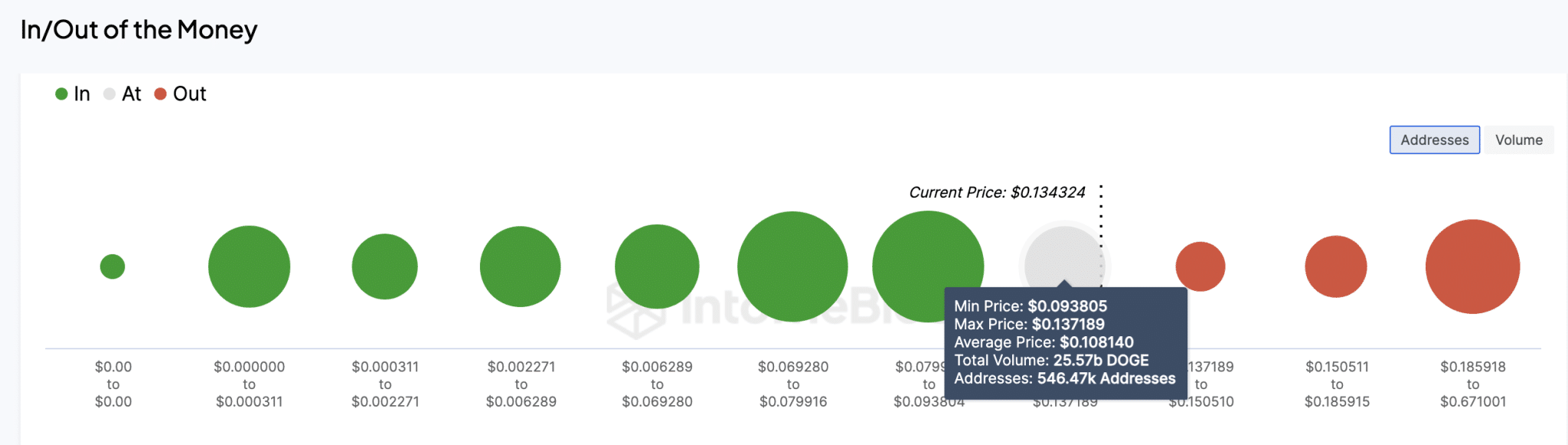 However, IntoTheBlock’s global in/out of money (GIOM) data suggest, DOGE could find support at the $0.12 territory in the near-term. As seen below 1.1 million existing holders had acquired 33.74 billion DOGE at the average price of $0.11.