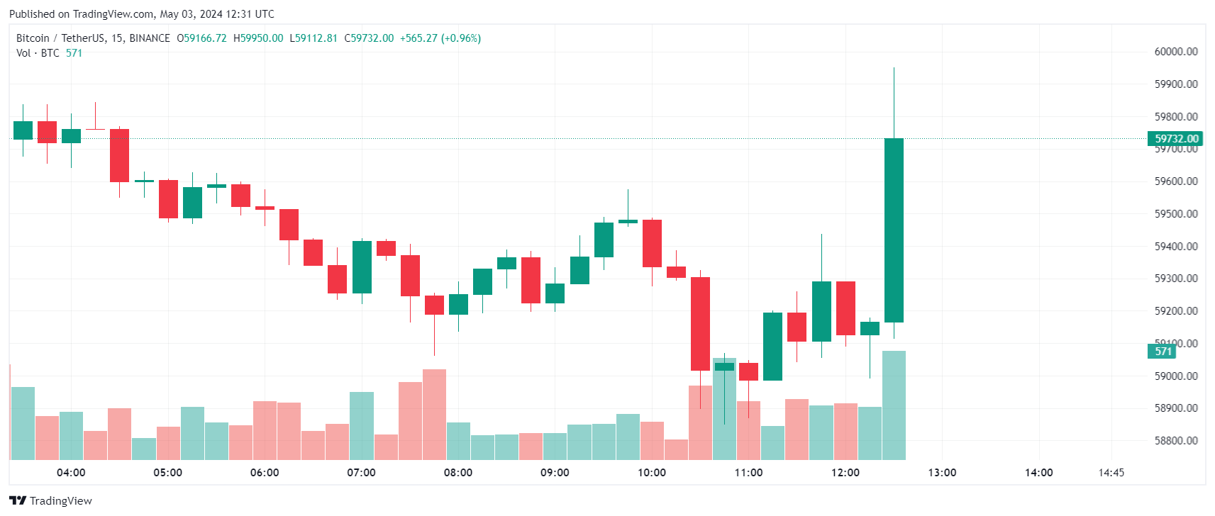 Bitcoin's reaction after the incoming data was as follows: