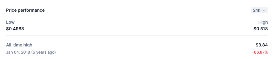 XRP momentarily dipped to the $0.4 mark in the past day before climbing back to the $0.5 level. Despite this recovery, XRP maintains a 5% decline in its weekly trading price. Meanwhile, XRP’s market loss is a more significant 19% over the past month.