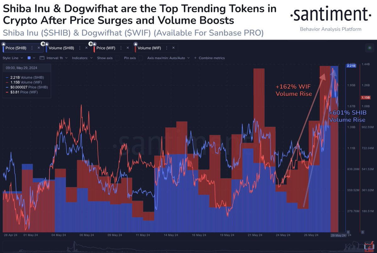 In the ever-evolving landscape of cryptocurrency, meme coins continue to carve out a niche that attracts substantial attention and trading volume. Recent analysis by Santiment highlights a significant uptick in activity around prominent meme tokens, with Shiba Inu (SHIB) and DogWifHat (WIF) leading the pack.