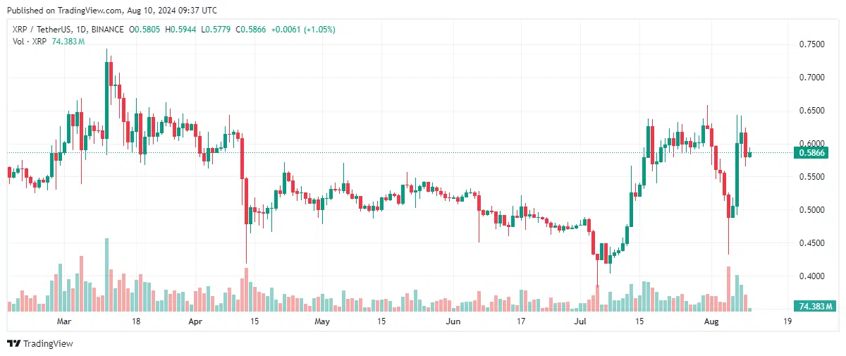 Expectedly, XRP reacted positively to this development, surging to $0.6579 per token. This marks a surge of 51.76% from its monthly low of $0.4335, registered on August 5.