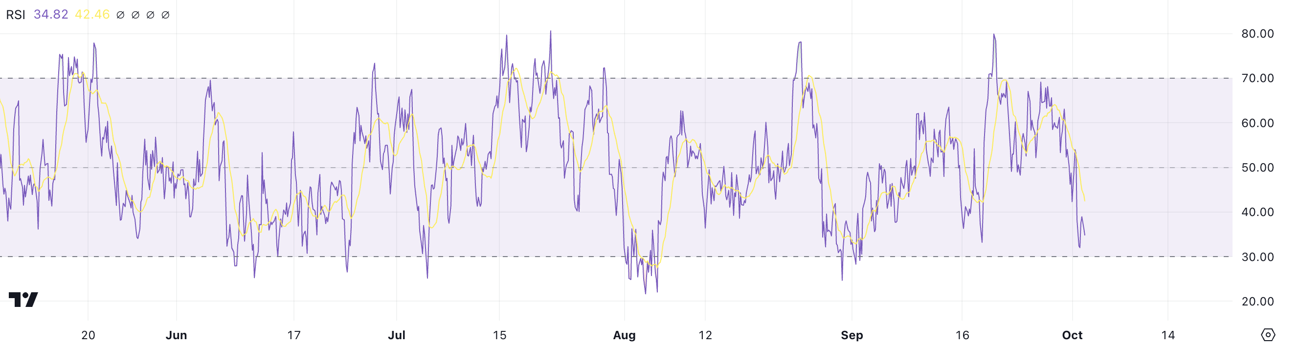 SOL currently exhibits a RSI of approximately 34.82, a notable decrease from around 70 just fifteen days prior. This substantial drop indicates a significant shift in market sentiment, moving from a bullish phase — where buying pressure was dominant — to a more bearish outlook characterized by increased selling activity. The RSI is a technical indicator used to gauge the momentum and speed of price movements.