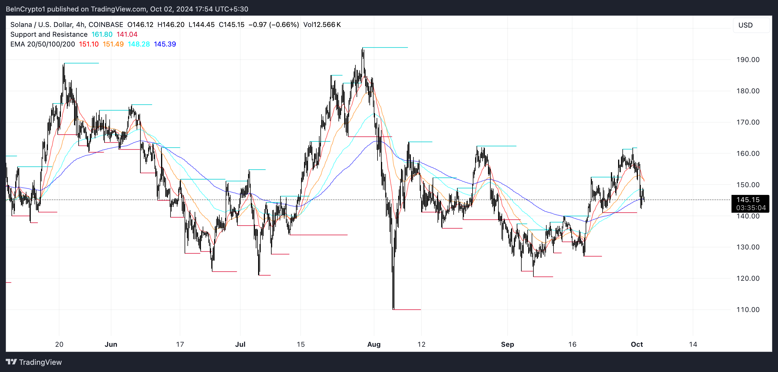 Notably, the number of new PumpFun tokens launched daily has been climbing again since late September. This resurgence indicates renewed user interest, which could positively impact SOL’s price. In this scenario, SOL could retest the resistance level at $162, as it did at the end of August. That would mark a potential 13% gain from current prices.