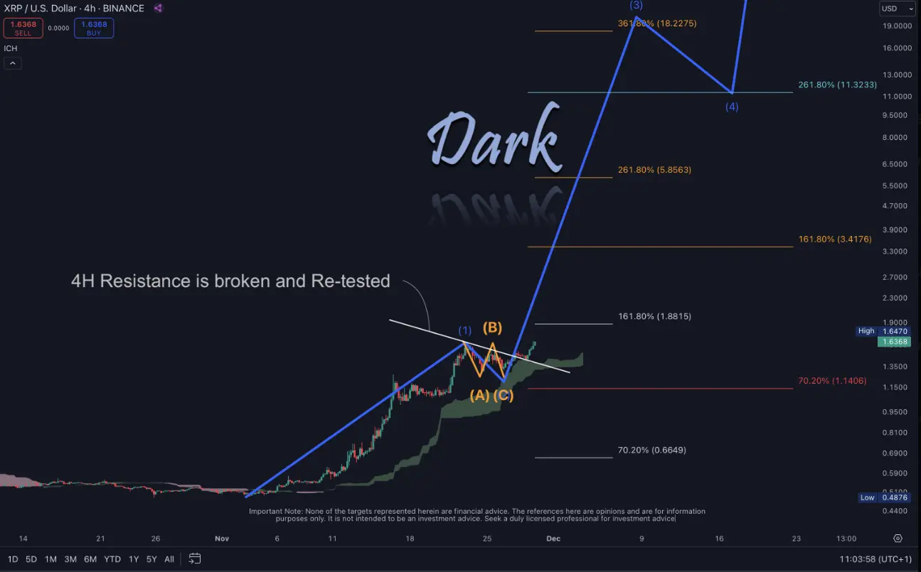 Ripple XRP has broken its key resistance at $1.44 and currently the price for the token stands above $1.63, confirming strong bullish momentum. Analysts predict that XRP could soon reach $1.88, with additional targets set at $3.41, $5.85 and even at $18.22 in the long term.