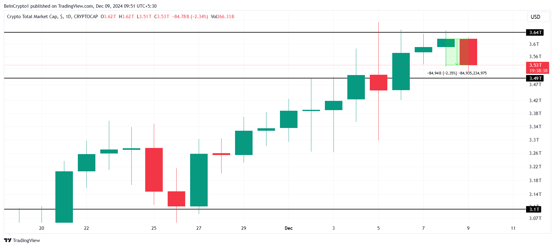 For TOTAL to recover, maintaining support at $3.49 trillion is essential. If this level holds, the market cap could rise toward the resistance at $3.64 trillion. Reclaiming this level would signal renewed bullish sentiment and pave the way for a stronger market rebound.