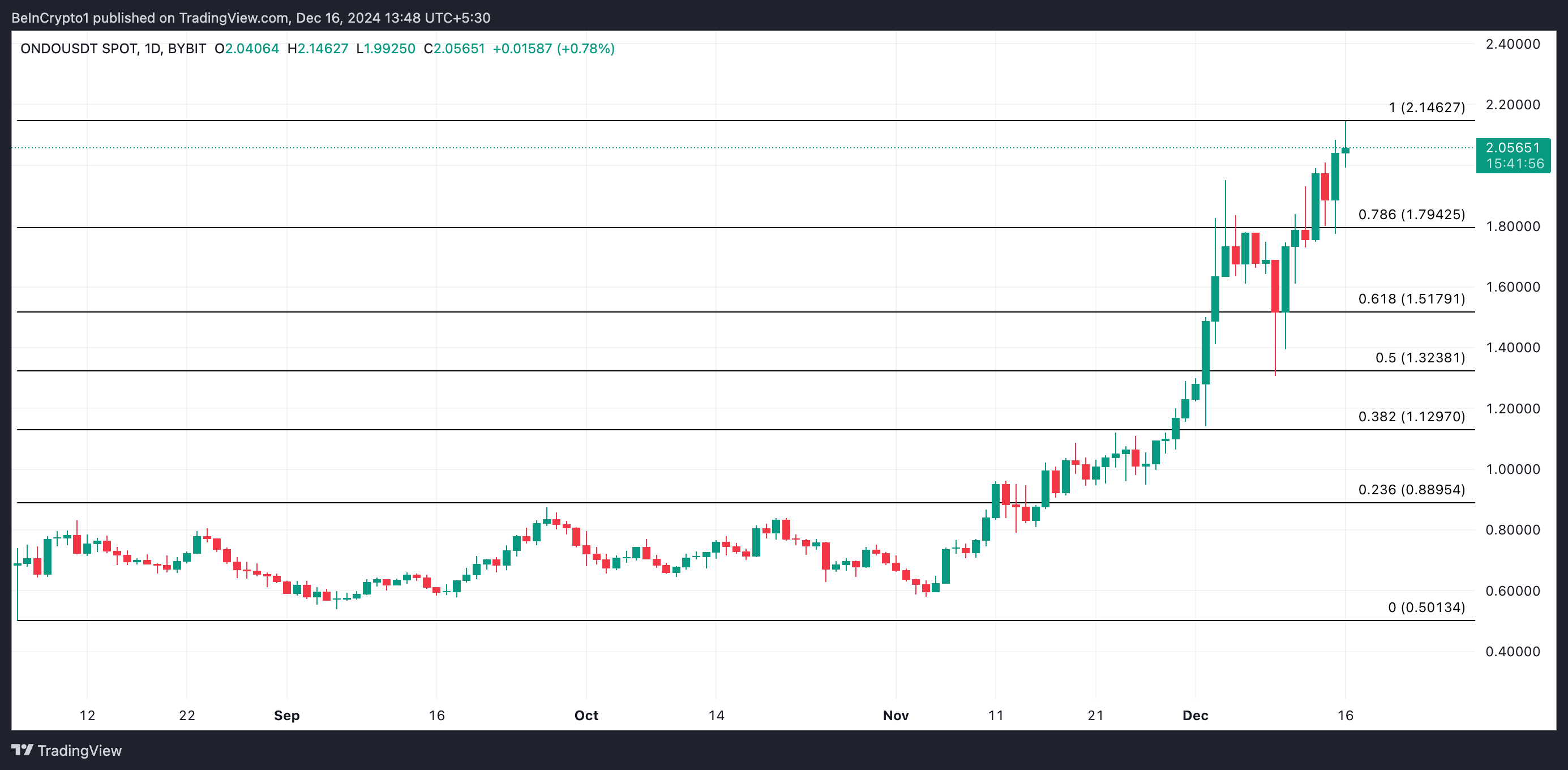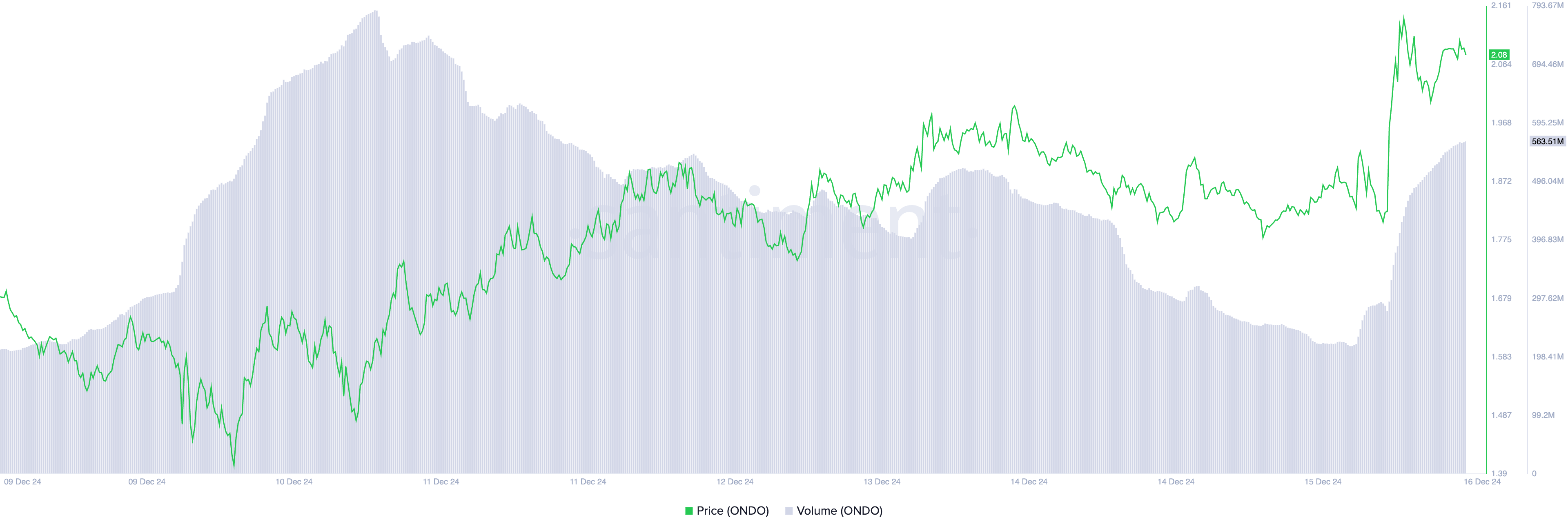 On a daily chart, ONDO trades at $2.05, slightly below its all-time high of $2.14, which has formed a resistance level. A successful break above this resistance will propel ONDO’s price to new peaks.