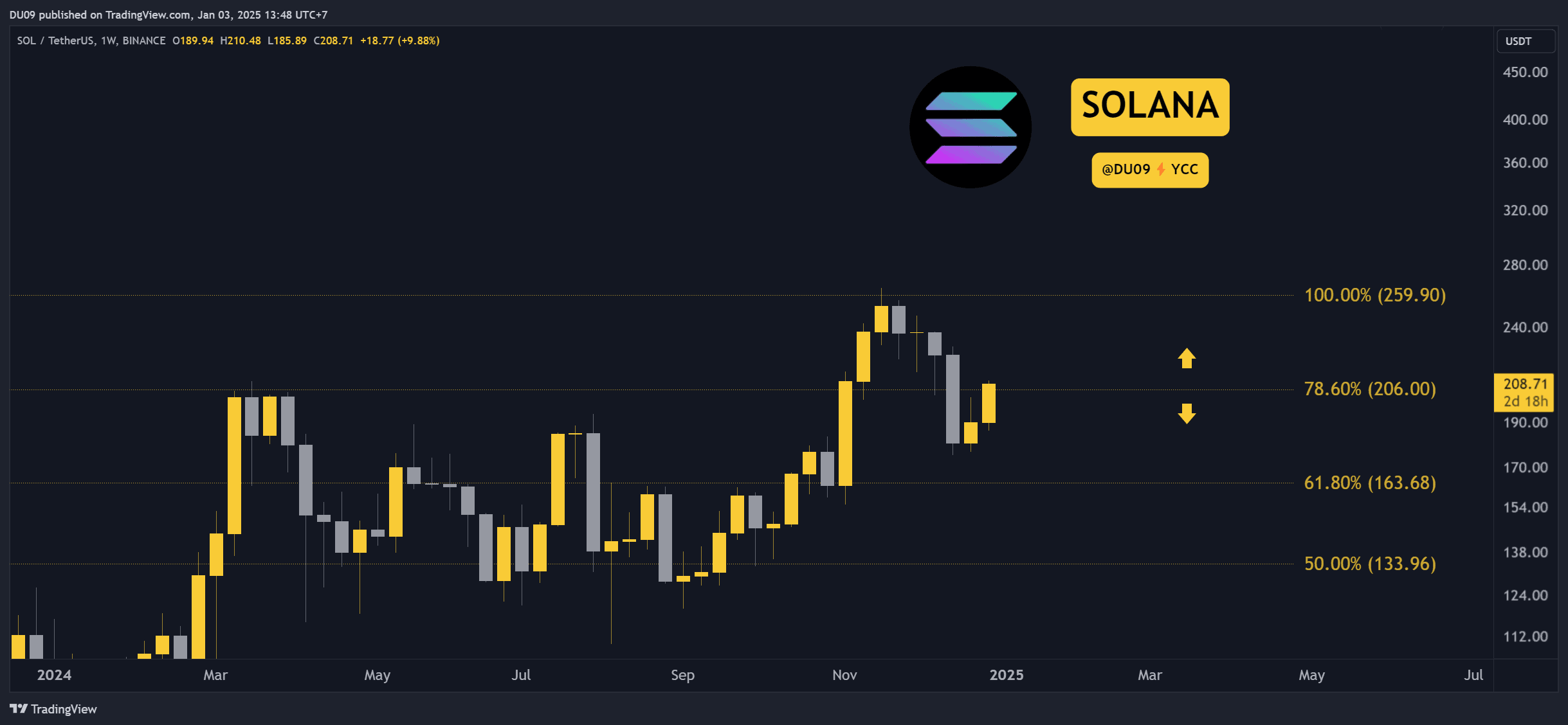 After a quick drop to $175 in late December 2024, Solana buyers returned and they managed to push its price above $200 this week. While it is still early to call it, the price is currently testing the $206 level as a key support. If it holds, $SOL has the path open to higher price levels.